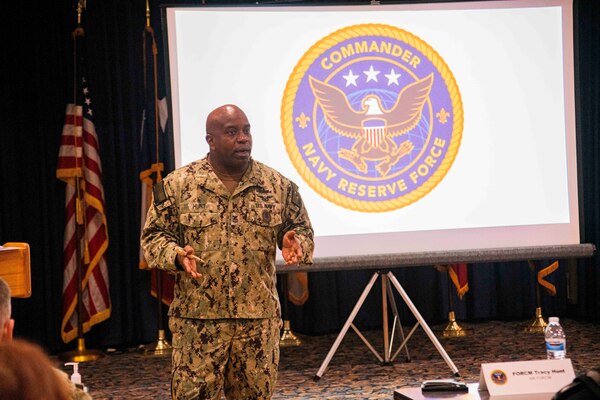 Force Master Chief Petty Officer Tracy L. Hunt hosted the Navy Reserve Leadership Mess Symposium to discuss pressing enlisted issues and exchange ideas among Reserve command senior enlisted leaders. The event, the first in-person meeting of the Reserve Leadership Mess since 2018, was held Feb. 07-09, 2022, at the Lone Star Center at Joint Reserve Base Forth Worth.