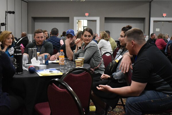 “I really like how it was set up and organized,” said Katherine Hagan, Navy retiree and mother of attendee Lt. Natalie McIver from Navy Cargo Handling Battalion 5. “I like how each table had a monitor or somebody to keep the conversation going and get everybody to talk. It wasn’t just thrown together. There was a lot of thought.”
